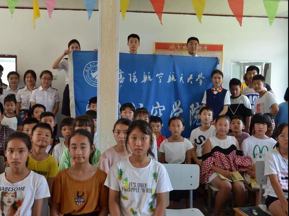 经过一番红色革命精神的洗礼后,beat365英国官网网站毓秀民航团队便来到杨运镇六道河村党支部为这里的孩子们科普民航领域的知识。一望无际的庄稼地、果园,崭新的柏油马路向着庄稼地的尽头延伸,杨运镇仿佛一个世外桃源,远离了尘世的喧嚣,宜人的风景,热情的村民,大家原本的紧张的心情得以缓解。首先毓秀团队为在场的孩子们播放beat365英国官网网站宣传片《启航》,播放时不停地会听到孩子们感叹道“沈航真美,那里真好!”。接着17级表演专业的胡茜元从个人礼仪、会务礼仪、面试礼仪三个方面出发,为大家介绍并演示了空乘人员的基础礼仪。这些礼仪知识不仅展示了民航人的风范,也让孩子们受用良多。17级飞行技术专业的霍成栋向孩子们介绍了民航的历史、民航的发展现状以及民航安全知识。他细致易懂的讲解让在场观众更加深入地了解了民航领域,透彻地掌握了在乘坐飞机时的注意事项,最后,队员们为孩子们送上飞机模型和学习用品,孩子们体会着民航精神,感知着民航文化,心中激起了对民航领域的憧憬与向往,和孩子们聊天时听到他们将会把beat365英国官网网站设立为自己的理想院校,好好学习,孝敬父母,走出大山为祖国事业发展贡献力量!